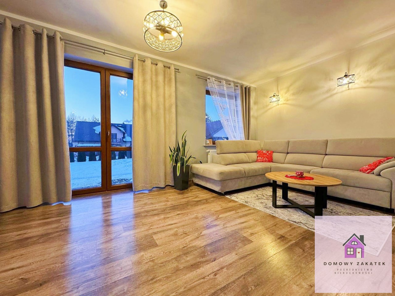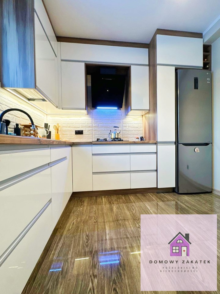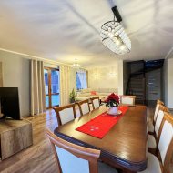 Wnętrze zostało urządzone w wysokim standardzie, z dbałością o detale i ponadczasowy styl. Co ważne — wszystkie meble oraz wyposażenie pozostają w cenie, dzięki czemu nowi właściciele mogą wprowadzić się bez dodatkowych nakładów.